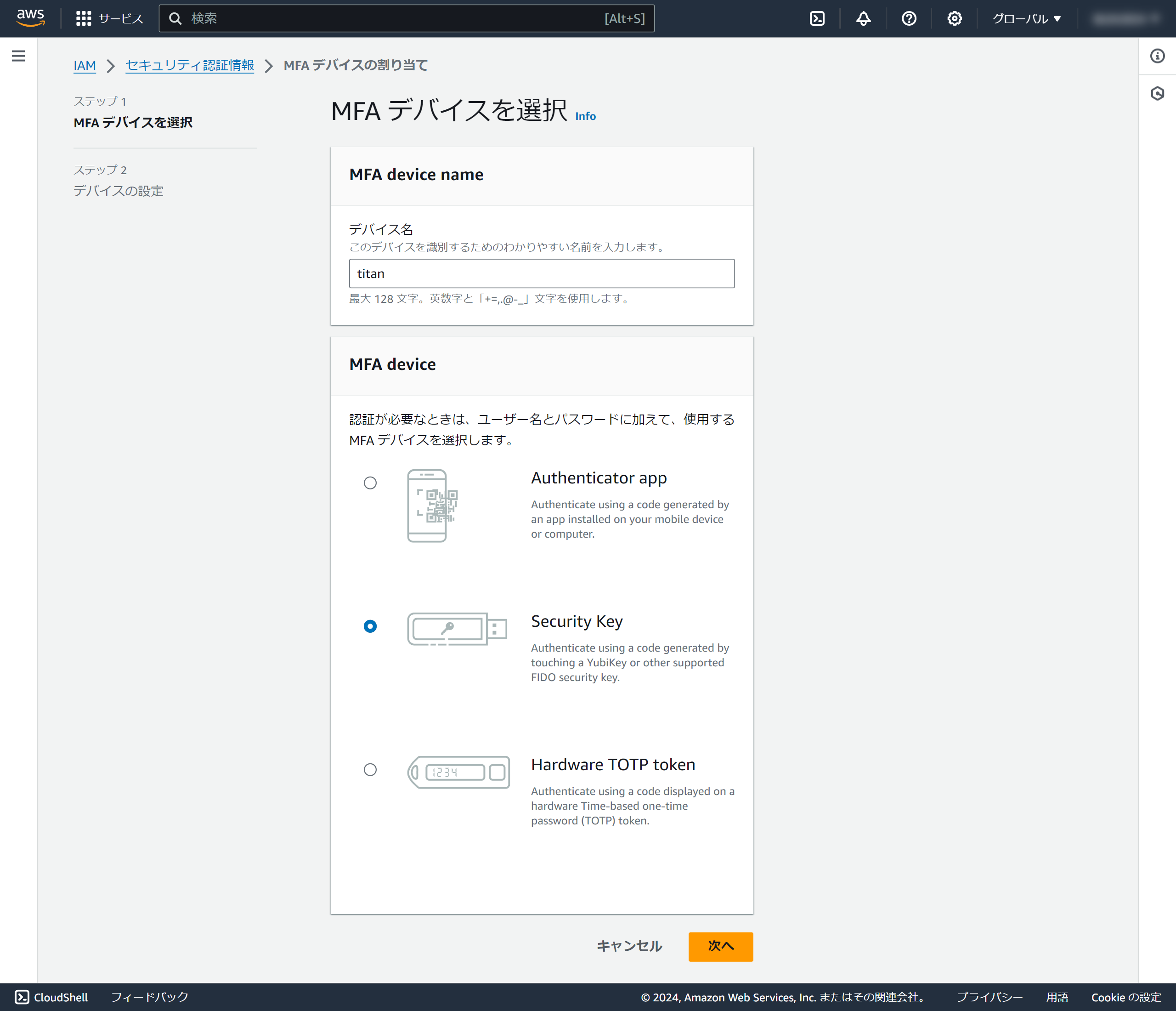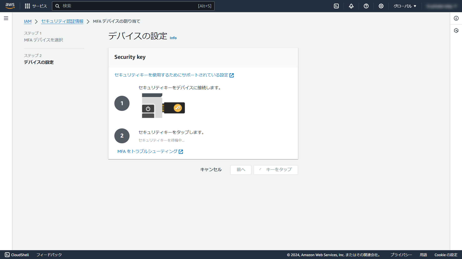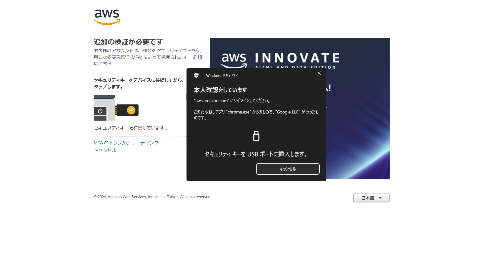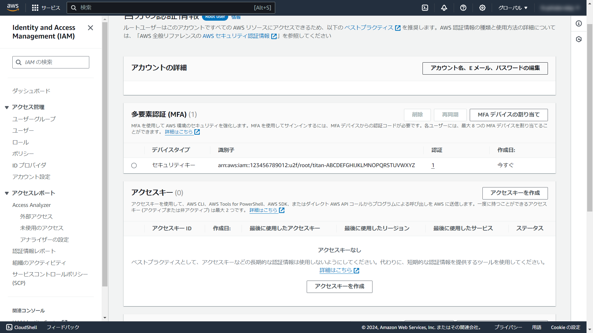同じセキュリティ キーを使って、2つのAWSアカウントのそれぞれのルートユーザーに対して設定とログインができました。