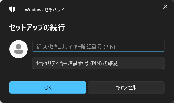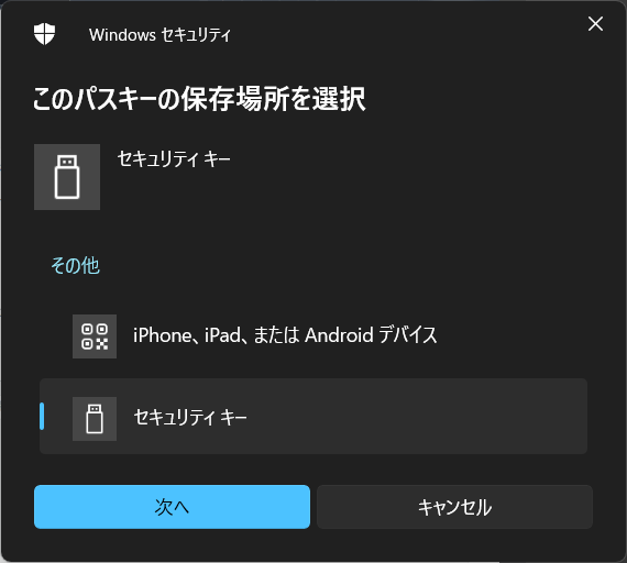 Windowsの機能でパスキーを選択するモーダルダイアログが表示されます。ウィザードに従い進めます。